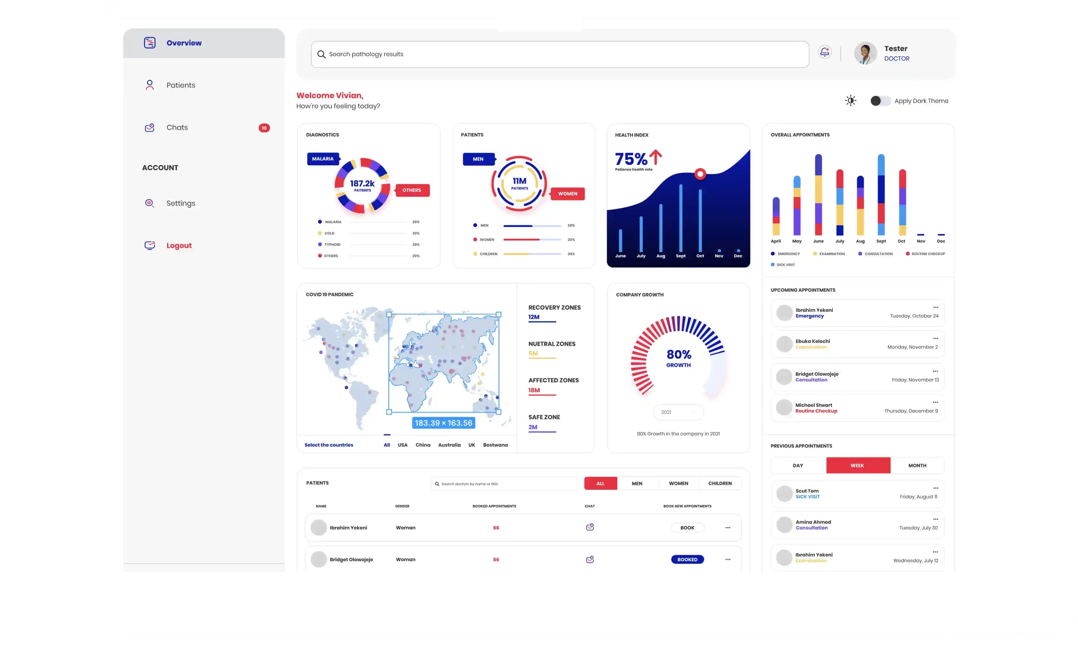 The major project objective was to create a secure, efficient, and robust back-end system, capable of collecting, processing, and analyzing real-time health data. It was also necessary to create a convenient dashboard for doctors, where they can view patient's metrics and predict the possible development of diseases.