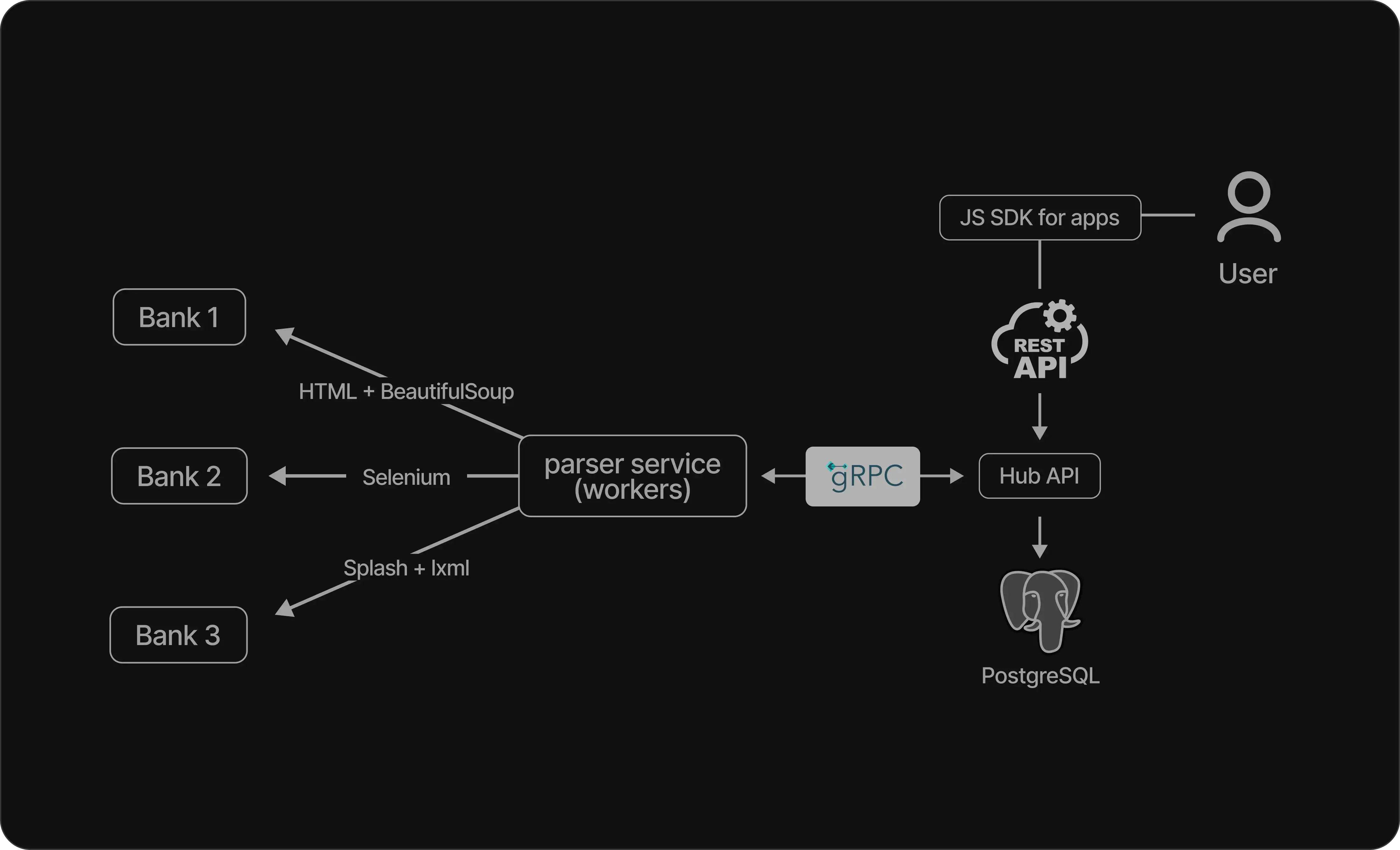 For seamless communication between different components, we implemented gRPC, a high-performance framework that facilitated fast and reliable inter-service communication. This allowed for seamless integration with various U.S. banks and fintech projects, ensuring smooth data exchange.To enforce data validation and maintain data integrity, we employed Pydantic, a powerful data validation library. This ensured that the SDK operated with consistent and valid data throughout the integration process.Splash, a headless browser, was utilized to render dynamic web pages and extract relevant information, providing a seamless user experience for the end-users. Lastly, the use of AWS as the cloud infrastructure provided scalability, high availability, and robustness. It enabled us to deploy and manage the SDK with ease, ensuring optimal performance and reliability.